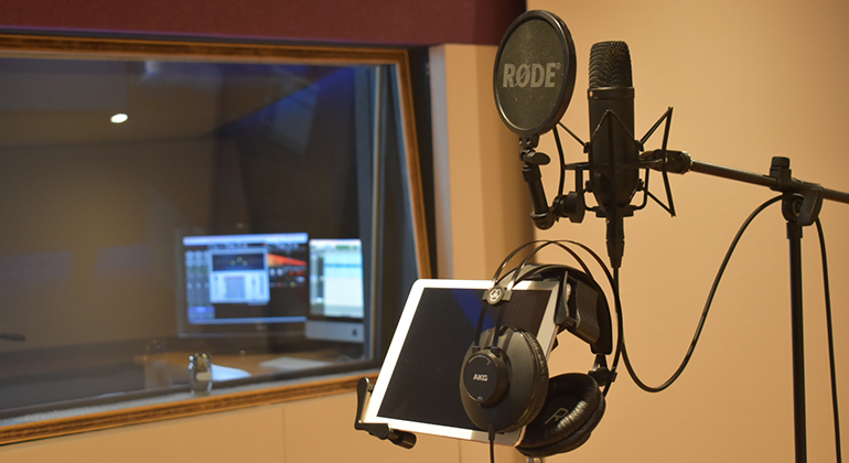 Ya sea grabación de audio en cabina o en locación, banco de locutores, narradores, actores y cantantes, diseño de audio, creación de música, mezcla, masterización y un largo etcétera.